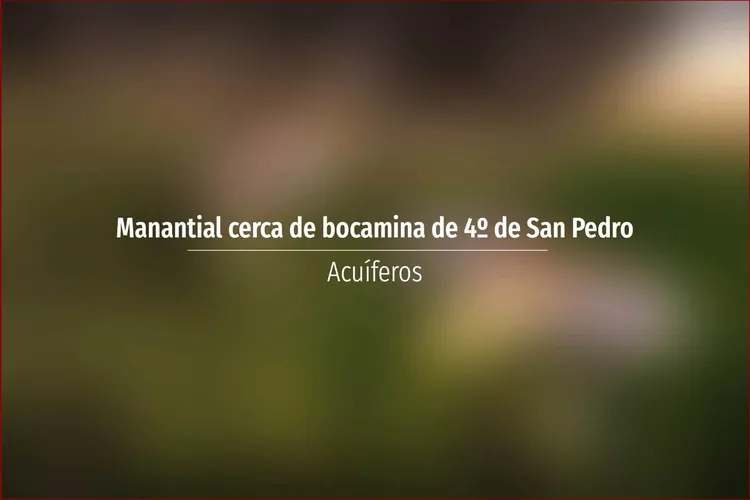 Manantial cerca de bocamina de 4º de San Pedro. Acuífero en Asturias: Cuenca: Norte Unidad Hidrogeológica: Unidades aisladas Sistema acuifero: Acuífero aislado Toponimia: Manantial cerca de bocamina de 4º de San Pedro Cota: 440 Na ...