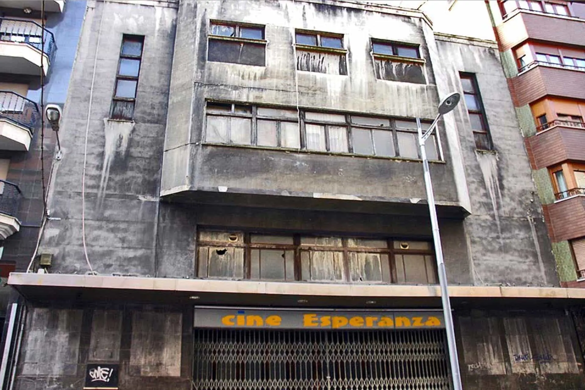 Cine Esperanza. Época: 1934 (proyecto) - 1942 (inauguración). Uso actual: desuso. Descripción tipológica: Depurado y rotundo edificio entre medianeras, en una de las arterias principales de la villa de Mieres (antigua carretera ge ...
